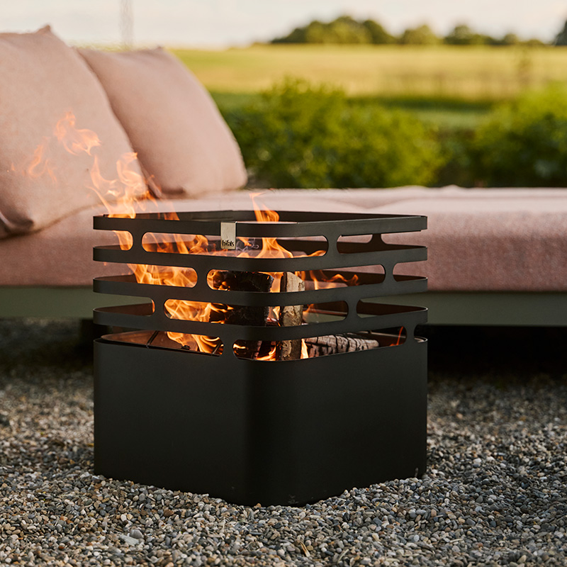 CUBE - this is how smart a fire basket can be! Just turn it over and the fire is extinguished safely and cleanly. With accessories, this multi-talent can become a grill or - when cold - a stool.