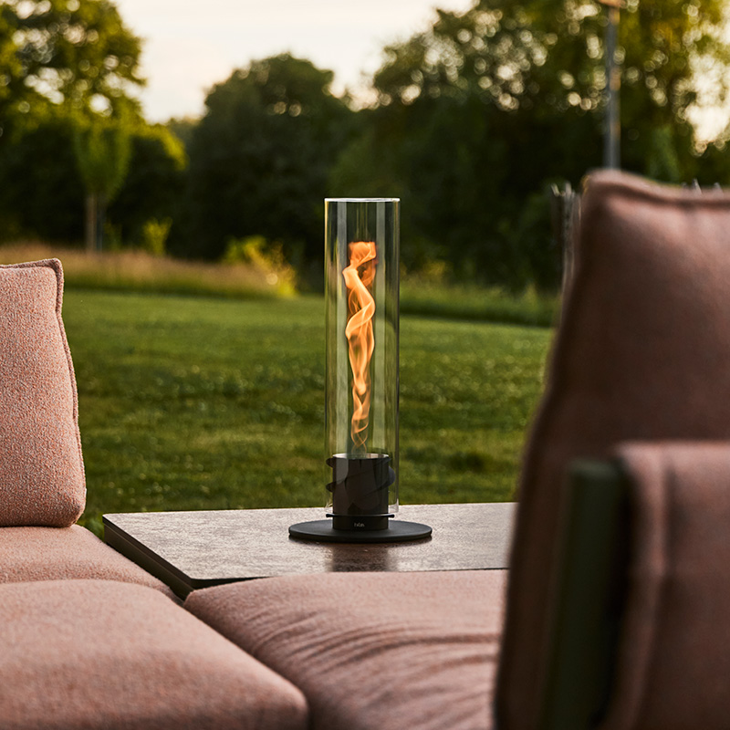 SPIN - a wild whirl of flames in a decorative glass cylinder conjures up the finest campfire atmosphere on your balcony, terrace or living room. An eye-catcher with a warm radiance. To feel good and enjoy.