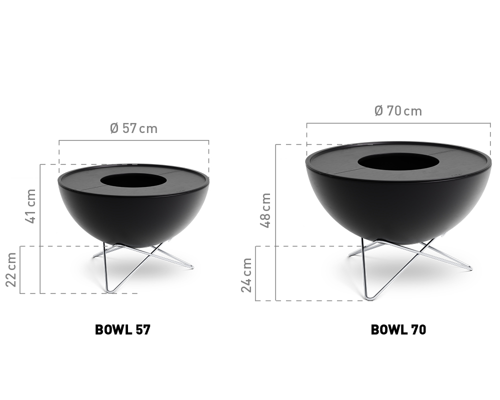 BOWL 70 Fire bowl with star base: Ø 70 x 31.5 cm, working height with star stand (grill height): 48 cm, product weight: 12.9 kg, packing dimensions: 72.5 x 72.5 x 40.5 cm