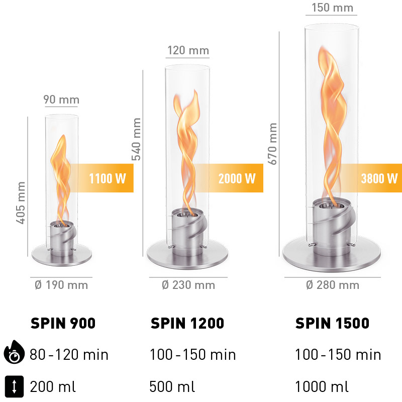 - SPIN 1200 can only be operated with bioethanol liquid fuel.